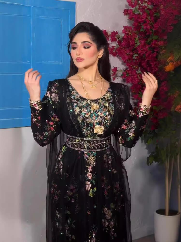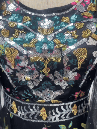 This exquisite garment features a unique sequin print design, with each sequin shimmering beautifully. The sheer mesh outer layer subtly reveals the details beneath, adding mystery and elegance.